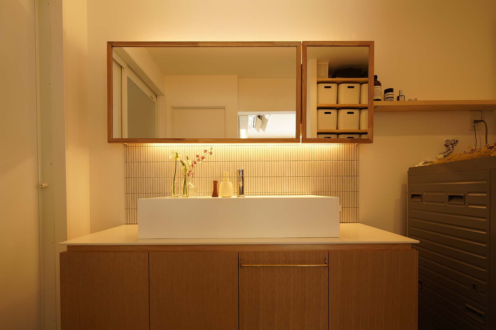 このほか、洗面スペースの鏡に木枠をつけたり、収納の建具を変更したり。